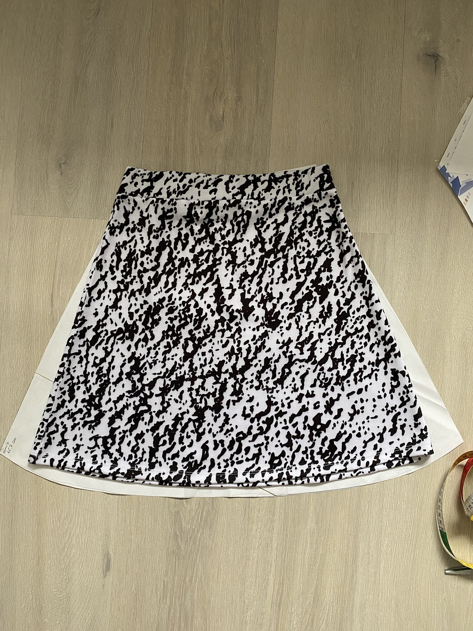 It turned out to be a little bit too flared. So, I decided to take a different skirt and narrow the pattern.